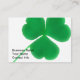 Ein Nahaufnahme-Foto eines grünen Klees ist Set auf einem tadellosen grünen Hintergrund in diesen einzigartigen Geschäftskarten. Fertigen Sie diese Visitenkarten jedoch, das Sie Änderung die Textart oder -farbe mögen besonders an, ändern Sie die Hintergrundfarbe, addieren Sie oder subtrahieren Sie persönliche Kontaktinformationen.