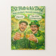 Erleben Sie den festlichen Geist des Saint Patrick's Day mit diesem lebendigen Puzzle, das zusätzlich zur morgendlichen festlichen Dekorationsbeschreibung in die Festtagsstimmung eintaucht. Das Design zeigt 2 fröhliche Männer in traditioneller grüner irischer Kleidung, komplett mit einer flachen Mütze und einem Leprechaun-Zylinderhut, die ihre Gläser für einen Whiskey-Toast erheben, mit einer festlichen Sprechblase, die "Cheers" und "Top of the morning to you" sagt. Dieses Puzzle fängt perfekt die Freude einer klassischen irischen Feier ein, vor einem üppigen grünen Hintergrund voller Shamrocks. Es ist eine unterhaltsame und spannende Aktivität für Ihre Saint Paddy's-Geburtstagsparty oder ein wunderbares Geschenk für jeden, der eine gute Feier liebt.