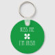 Grüner Schlüsselanhänger, der sagt "KISS ME I'M IRISH" in Weiß mit weißem Klee.