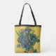 A timeless tote bag featuring Van Gogh’s Irises (1890), celebrated for its vibrant blue irises set against a warm yellow background, capturing Van Gogh’s bold color contrasts and expressive brushwork. Personalize the bag with your name or a short text, placed at the top above the artwork on both sides of the bag.