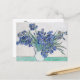 Eine Kunstpostkarte mit dem postimpressionistischen Gemälde Ire (1890) des niederländischen Künstlers Vincent Van Gogh (1853-1890). Er wurde von japanischer Kunst in seinen vielen Iris-Gemälden beeinflusst. Schöne blauviolette Töne in einer Vase vor weißem Hintergrund.
