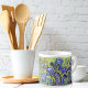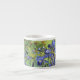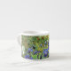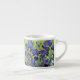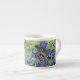 A fine art espresso cup with the post-impressionist painting, Irises (1889) by Vincent van Gogh (1853-1890). Violet-blue iris in the garden, which was influenced by Japanese art.