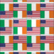Stilvolle, patriotische IRISH AMERICAN FLAGS Fabric, die sowohl Flaggen von IRLAND als auch die USA in einem gefliesten Muster zeigt.