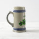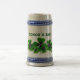 Bierstein mit Personalisierung und vierblättrigem Kleeblatt. Für die irische Bar, passen Sie mit dem Namen des Barkeepers, oder jeder Formulierung und Verwendung, um grünes Bier am St. Paddy's Day zu servieren. Der Stein kommt in dieser dunklen Farbe in blau geschnitten, oder weiß in Gold geschnitten. Wechseln Sie auch in einen Reisebecher oder eine Tasse.