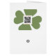 Diese St. Patrick's Day-Karte hat ein grünes und goldgelbes vierblättriges Kleeblatt auf der Vorderseite zusammen mit den Farben der irischen Flagge. Im Inneren ist ein irischer Segen, zusammen mit den Segnungen des Gaelic St. Patrick's Day, "Éire go Brách" und "Lá Fhéile Pádraig Sona Duit", der perfekte Ort, um all Ihre Feiertage am St. Patty's Day zu versenden.