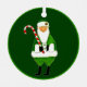 Kreatives irisches Weihnachtsgeschenk mit lustigem Weihnachtsmann in grünem Anzug. Bearbeiten Sie Text, um seinen Namen hinzuzufügen.