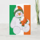 Niedlicher patriotischer irischer Weihnachtsschneemann, gekleidet in einem Fahnen-Hut und Schal mit den drei Farben Irlands ...Machen Sie Ihre Karten dieses Jahr ganz besonders mit Ricaso