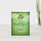 Green Saint Patrick's Day Wedding Thank You Foto Note card with your foto on the inside featuring a green shamrock leaf with gold outline on white waved veil on green grunge stained background. This modern wedding einladung design is part of a wedding set or wedding collection and is a fully customizable template perfekt for an Irish St. Patrick's Day wedding.