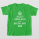 Irish Dancing, Irish Dancer's, Jig On T - Shirt. Behalt mit diesem fantastischen Irish Dancing T - Shirt auf Jigging. Dieses lustige Irish Dancing Shirt hat ein klassisches Behalten Calm-Design mit einer Krone, die irische Kleeblätter anstelle des traditionellen Kreuzes und der Flour-de-lis hat. Der Slogan lautet: BEHALT SMILING UND IRISH JIG ON. Das irische Thema wird mit einem cool aussehenden Kleeblatt im O des Wortes ON fortgesetzt. Dieses lustige Irish Dancing Thema Tee ist ideal für irische Tänzer jung oder alt, und machen Sie ein fantastisches Irish Dancing Geschenk, dass jeder irische Tänzer freut sich zu erhalten. Weitere irische Tanzgeschenke und irische Tanzgeschenke stehen zur Verfügung.