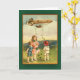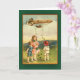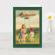 Cute Irish art illustration of children in a field, with a diriabilicious (zeppelin? blimp?) overhead, scattering shamrocks across the landscape. Send St. Patrick's Day Greetings to friends and family, or add text to create a personal St. Patrick's Day birthday card or other greeting.
