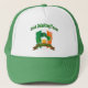 Irisches Bier umgeben von drei Kleeblättern und die irische Flagge auf einem Schild im coolen Grunge-Stil mit den beliebten Slogans "Irish Drinking Team" und "St. Patrick's Day."