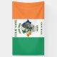 Zeigen Sie Ihr irisches Erbe mit diesem 15 x 15 cm irischen Flaggen-Banner. Fügen Sie Ihren Familiennamen oder einen anderen Text, z. B. einen Bar oder Club, und Ihren eigenen Standort oder anderen Text hinzu. Das Zentrum der Fahne hat ein originelles Design mit einem amerikanischen Adler, mit irischen Kleeblatts und den Flaggen von Irland und Ihrem Staat. Es gibt 3 Möglichkeiten - Innen, Outdoor und Outdoor mit Metallkrümeln. (Derzeitiger Text wird gestrichen, um ihn leer verlassen, nur das Wappen in der Mitte wird angezeigt)