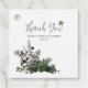 Dieses elegante St. Patrick's Day Brautparty Dankeschön Sie quadratischen Gefälligkeitstags bietet handgezeichnet irische und gotische Illustrationen mit schwarzer Tinte, die einen Schädel und eine schwarze Krähe mit grünen Rose, Blätter, Beeren, Wildblumen und grünen Nelken schmücken. Die Rückseite weist ein schönes Muster mit diesen Elementen auf. Eleganter weißer Hintergrund. Alle Texte können bearbeitet werden.