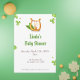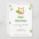 Baby Dusche in Grün, Gold und Weiß. Die Illustrationen sind einige Klee, eine Harfe und Blätter. Originelle Illustrationen, wo mit Markern und Stiften gemalt. Alle Elemente der Einladung sind anpassbar. Personalisieren Sie den Text mit Ihren eigenen Informationen. Klicken Sie auf Anpassen, um Design, Schriftart, Farben oder Größen zu ändern. Illustriert und entworfen von Patricia Alvarez.