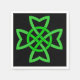 Image is my original drawing of a green Celtic knot. The green is vibrant against a black background. See my store Art by MAR for matching products with this design.
