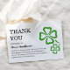 Eine schlichte irische Dankeskarte mit einem traditionellen, weißen Hintergrund, eine Abbildung eines grünen Kleeblatt Kleeblatts und eine einfache Danknote, die leicht personalisiert werden kann. Das ist eine schöne Karte, die Sie an Freunde und Verwandte schicken können, die Ihnen Liebe und Freundlichkeit während Ihrer Trauer gezeigt haben.