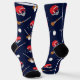 Neuartige Hurlingsocken mit Hurley-Sticks, Kugeln und Helmen auf dunkelblauem Hintergrund gemustert. Ideal für Hurling Spieler und Fans.