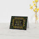 Grußkarte mit Urlaubsnachricht wird in goldenen Buchstaben auf schwarzem Hintergrund geschrieben