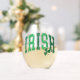 Zeigen Sie Ihren irischen Stolz mit diesem lustigen, stemlosen Weinglas, das das Wort "IRISH" in einer kurvenförmigen Schrift mit Retro-Schrift in bedrückten Farben von hell und dunkelgrün zeigt.