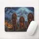 Entfesseln Sie den unheimlichen Geist mit diesem unheimlichen Halloween-Design, das eine Hundepackung unter einem dunklen, mondbeleuchteten Himmel bietet, umgeben von fliegenden Fledermäusen und glühenden Kürbissen. Ideal für diejenigen, die mit ihren wütenden Freunden eine Touch voller Furcht Liebe haben!
