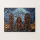 Entfesseln Sie den unheimlichen Geist mit diesem unheimlichen Halloween-Design, das eine Hundepackung unter einem dunklen, mondbeleuchteten Himmel bietet, umgeben von fliegenden Fledermäusen und glühenden Kürbissen. Ideal für diejenigen, die mit ihren wütenden Freunden eine Touch voller Furcht Liebe haben!
