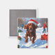 Irish Red Setter Running Snow mit Weihnachtshut Magnet