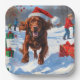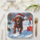 Irish Red Setter Running Snow mit Weihnachtshut Pappteller