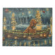 Set segelt mit dieser sehr detaillierten Abbildung in den Zauber der Urlaubssaison und zeigt einen stolzen Hund, der in einem festlich dekorierten Boot sitzt und über einen ruhigen Weihnachtssee gleitet. Die Lichter der nahen Kiefernbäume reflektieren das Wasser und warmen, festlichen Glanz, der das gemütliche Ambiente verstärkt. Die Ornamente versetzen sich von den Seiten des Bootes, während die Laternen leuchten und eine Szene schaffen, die das wahre Wesen der Weihnachtswärme und -freude einfängt. Dieses nostalgische Kunstwerk bringt eine Touch von Urlaubsmagie in jeden Raum, perfekt für diejenigen, die den Geist der Saison schätzen.