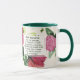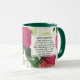 Irish Sessing coffee Tasse zeigt ein wunderschönes Blumendesign in Aquarellen mit roten, rosa und grünen Kleeblatten-Blume und Blätter. Es enthält ein inspirierendes irisches Gebet, "Möge Gott dir für jede Träne ein Lächeln geben, für jede Sorgfalt ein Versprechen und einen Segen in jedem Prozess, Für jeden Seufzer, ein süßes Lied und eine Antwort für jedes Gebet."_