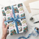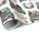 Ein aquamariner blauer Lieferwagen LKW trägt einen verzierten Holiday Baum und Geschenkpackungen auf diesem niedlichen Geschenkpapier. Ein schöner, roter irischer Setter Hund schaut von der Heckklappe aus. Ein rustikales Holzschild auf der hinteren Stoßstange sagt "Weihnachtsmann". Ihr Monogramm ist in einem hübschen Kiefernzapfen und einem roten Beerenkreu eingefasst, und der stilisierte Goldtext sagt "Frohe Weihnachten". Sie können auch den Abschnitt "aus dem (Name)" anpassen.
