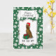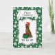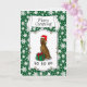 Frohe Weihnachten Weihnachtsmann Irish Setter - Funny, lächelnd, Cartoon Irish Setter Hund mit einer Weihnachtsmannmütze und sitzen mit einem Weihnachtsgeschenk mit einem Bogen und Glocken. HO HO HO! Copyright © Angi Laframboise. Niedlicher Weihnachtsgeburtshund züchtet Geschenke für Hundefreunde.