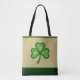 Show your Irish pride with this elegant St. Patrick’s Day tote bag featuring a beautifully detailed shamrock design. At the center, a richly textured imitation embroidery highlights a vibrant green shamrock adorned with intricate Celtic knots, symbolizing unity, eternity, and Irish heritage. The shamrock appears stitched onto a natural canvas-look background, creating a handcrafted, artisanal aesthetic.
