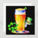 Alle Schlangen, die Irland am St. Patrick's Day in den Pubs in England verlassen haben zu trinken. Wasserfarbe mit einem großen Bier und Kleeblättern und einer Schlange in einem grünen Hut, der hinter dem Bier herausschaut.