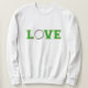 Liebhaber des irischen Gälischen Sports werden dieses lustige Sweatshirt mit dem Wort LIEBE in grünen Buchstaben zu schätzen wissen. Der Buchstabe O wurde durch einen großen Sliotar (Hurlingball) ersetzt.
