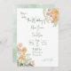Einfache Aquarellbouquets von Molkereien in einem frischen, zeitgenössischen Look für eine moderne Einladung. Moderne kalligraphische Elemente in Waldgrün, die Sie an jede gewünschte Farbe anpassen können. Aquarellbouquets in Salbei grün, zesty orange und warmes Rosa vorne. Mit Salbei Wasserfarbenwäsche und Paarinitialen auf der Rückseite.