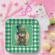 Eine wunderschöne grüne Gingham Kariert Square Papiertafel mit einem erlesenen Irish Gnome zum St. Patrick's Day