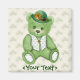 Der niedliche grüne Bär ist bereit für den St. Patrick's Day mit seinem bezaubernden irischen Hut und der Weste mit Kleeblatt und Akzenten. Fügen Sie Text für eine spezielle benutzerdefinierte Touch hinzu.