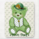 Der niedliche grüne Bär ist bereit für den St. Patrick's Day mit seinem bezaubernden irischen Hut und der Weste mit Kleeblatt und Akzenten. Fügen Sie Text für eine spezielle benutzerdefinierte Touch hinzu.