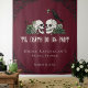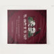 This elegant Irish Til Death Burgundy Gothic Skulls Backdrop features hand-drawn black-ink Irish and gothic illustrations, showcasing two skulls and a black crow surrounded by green roses, leaves, berries, wildflowers, and lucky green clovers. Set against a deep burgundy background, this dramatic design is perfect for gothic weddings, Irish-themed celebrations, and moody event décor. All text is editable for easy personalization.