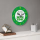 Diese lustige Wanduhr liest, dass ich nicht zu spät bin, ich bin in irischer Zeit, mit keltischen Knüpfarbeiten-Buchstaben in Gelb, rückwärts Zahlen auf grünem Hintergrund.