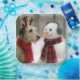 Irish Wolfhound Gazing at a Cute Snowman Pappteller