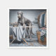 Ein irischer Wolfhound-Hund steht beim Bügeln auf den Hinterbeinen