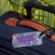 Trendy irisierende tropische Blätter auf lila Hintergrund mit DIY aquamarinen Namen oder Monogramm. Klicken Sie auf "Anpassen", um Farben und Stile zu ändern. Probier es aus. Es ist einfach.