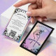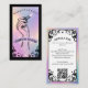 Erhöhen Sie Ihr Make-up-Markenimage mit unserer holografischen Vintage-Make-up-Studio-Visitenkarte mit irisierendem Effekt. Die Karte zeigt einen handgezeichneten, verzierten Rahmen vor einem falschen holografischen Hintergrund mit irisierendem Effekt und schafft so eine auffallende, tarot-inspirierte Ästhetik. Die Vorderseite zeigt unseren handgezeichneten Skizzierstil einer weiblichen Hand, die einen Lippenstift hält, zentriert innerhalb des Rahmen-Designs, und lässt Platz für den Namen und die Tagline Ihres Studios. Die Rückseite zeigt elegante Schnörkel, einen holografischen Rahmen und Ihre Kontaktdaten. Die dramatische Kombination von Schwarz mit schimmernden holografischen Akzenten schafft ein anspruchsvolles, mystisches und vintage-inspiriertes Aussehen, perfekt für Make-up-Artisten, Schönheitsstudios und Make-up-Profis, die eine einzig