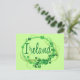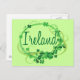 Dieses wunderschöne St. Patrick's Day Design zeigt die Beschriftung "Irland" in dunkelgrünem Text auf einem ovalen Hintergrund von Kleeblättern in verschiedenen Grüntönen.