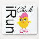 iRun Chick T - Shirt, Bekleidung und Geschenke mit einem niedlichen gelben Kick sportliche Laufschuhe und Kleidung und ihr Audio-Player. Perfektes Geschenk für den begeisterten Läufer.