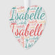 Isabelle. Zeigen und tragen Sie diesen beliebten schönen weiblichen Vornamen, der als bunte Wortwolke aus waagerechten und senkrechten, kursiven Handschrift-Typografie in verschiedenen Größen und bezaubernden frischen Farben entworfen wurde. Tragen Sie Ihren positiven amerikanischen Namen oder zeigen Sie der Welt, wen Sie Liebe oder Verehrung. Merch mit diesem weichen Text Kunstwerk ist ein großartiges Geschenk, nicht nur in der Geschichte der Frauen Monat, oder Geburtstag Geschenk.
