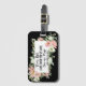 Auf dem Gepäckschild mit inspirierender Zitat-Schrift wird ein wunderschönes, blumenfarbenes Aquarellbild mit rosa-weißen Blume und einem schwarzen Hintergrund im Grünen dargestellt. Es enthält einen Teil einer ermutigenden Bibelverse Isaiah 43:1, "Angst nicht, ich habe dich beim Namen genannt, du bist meins."