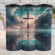 Dieses Bild zeigt ein feierliches Holzkreuz, stehend hoch an einem dramatischen Himmel, dessen Lichtstrahlen von hinten ausgehen und sich über ruhiges Wasser reflektieren. Dunkle, launische Wolken umrahmen die Szene und schaffen eine mächtige spirituelle Atmosphäre. Überflüssig lautet die beruhigende Schrift aus Isaiah 43:2: "WENN DU DURCH TIEFE GEWÄSSER GEHST, WERDE ICH MIT DIR SEIN", die eine Botschaft von göttlicher Gegenwart und Komfort während der Not bietet.