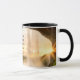 Die inspirierende Schriftkaffee-Tasse zeigt eine schöne Szene durch eine Höhle, in der die Sonne auf einem Wasserfall scheint. Es enthält einen Teil der Bibel Verse Isaiah 43:2, "Wenn du durch tiefes Wasser gehst, werde ich bei dir sein."